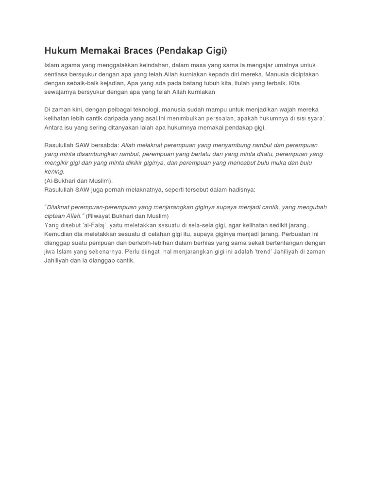 Web Hukum memakai braces bagi orang islamAda dua hukum1. Web Hukum pakai braces terbahagi kepada harus haramHarus kiranya keadaan gigi kita tu mengaibkan kan kita memberi kesakitan pada diri Haram untuk mencantikkan. Web Dan setiap kali ke klinik korang akan dikenakan charge lagi.